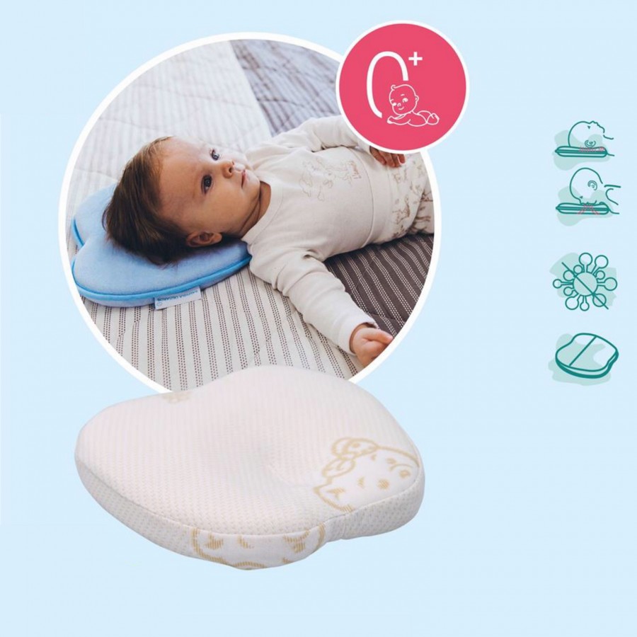 В подушке предусмотрена специальная выемка под голову ребенка. Она исключает перекрывание дыхательных путей, если малыш случайно повернется на живот во время сна и способствует профилактике плагиоцефалии (асимметрии черепа).