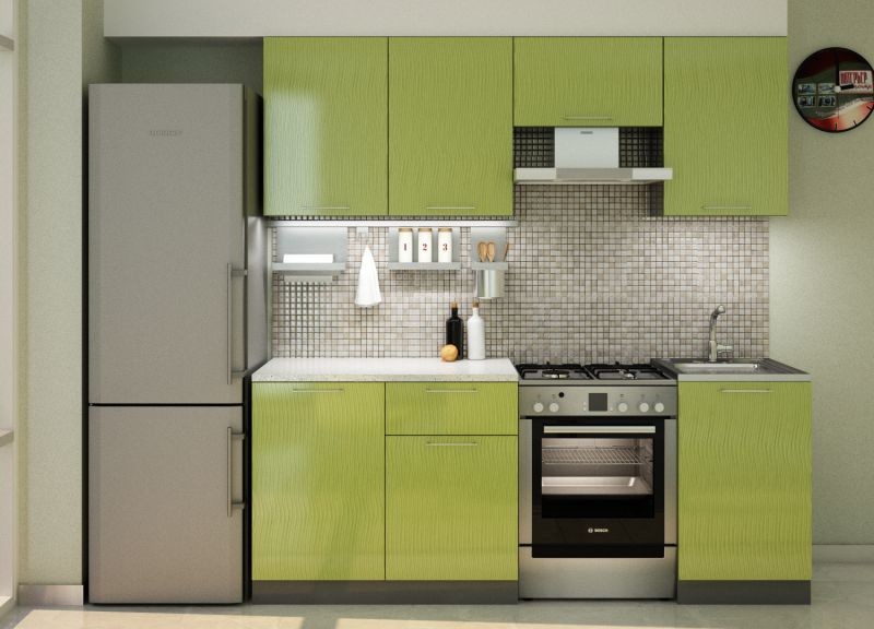 Отличное решение для тех, кто ценит качество за разумную цену. Данный гарнитур отличается лаконичным дизайном, компактностью, что позволяет ему отлично вписаться даже в малогабаритную кухню. Ширина гарнитура 2,1 м.