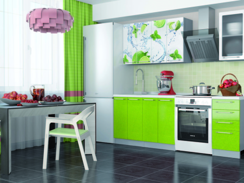 Кухня с фотопечатью — это компактная модель, выполненная в неизменном качестве. Красочный рисунок и цветовое сочетание фасадов наполнят кухню ярким светом, который будет придавать хорошее настроение каждый день! Такой принт не смывается и за кухней можно ухаживать как за обычной мебелью, производя уборку влажной тканью со щадящими моющими средствами.